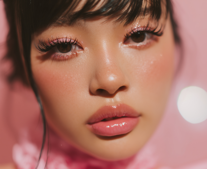Переходим к образу и бьюти-привычкам. Внешность Сhinese baddie — это, прежде всего, вирусный макияж дуюн. Он разительно отличается как от западного контуринга, так и от славянского китча. Это эстетика фарфоровой куколки: нежной, сияющей, с акцентами на глаза, со стыдливым, но чётким румянцем и жемчужными переливами на скулах.