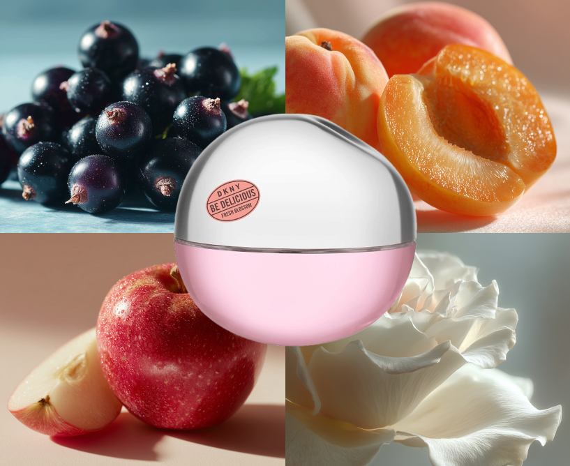 Be Delicious Fresh Blossom — один из самых удачных, не сдающих позиций фланкеров. Знакомство с ним начинается с узнаваемого «хруста» сочного зелёного яблока, но в этой версии акцент смещен на цветы. Яблочная свежесть быстро обрастает лепестками белых цветов, а также ненавязчивой сладостью абрикоса и смородины.